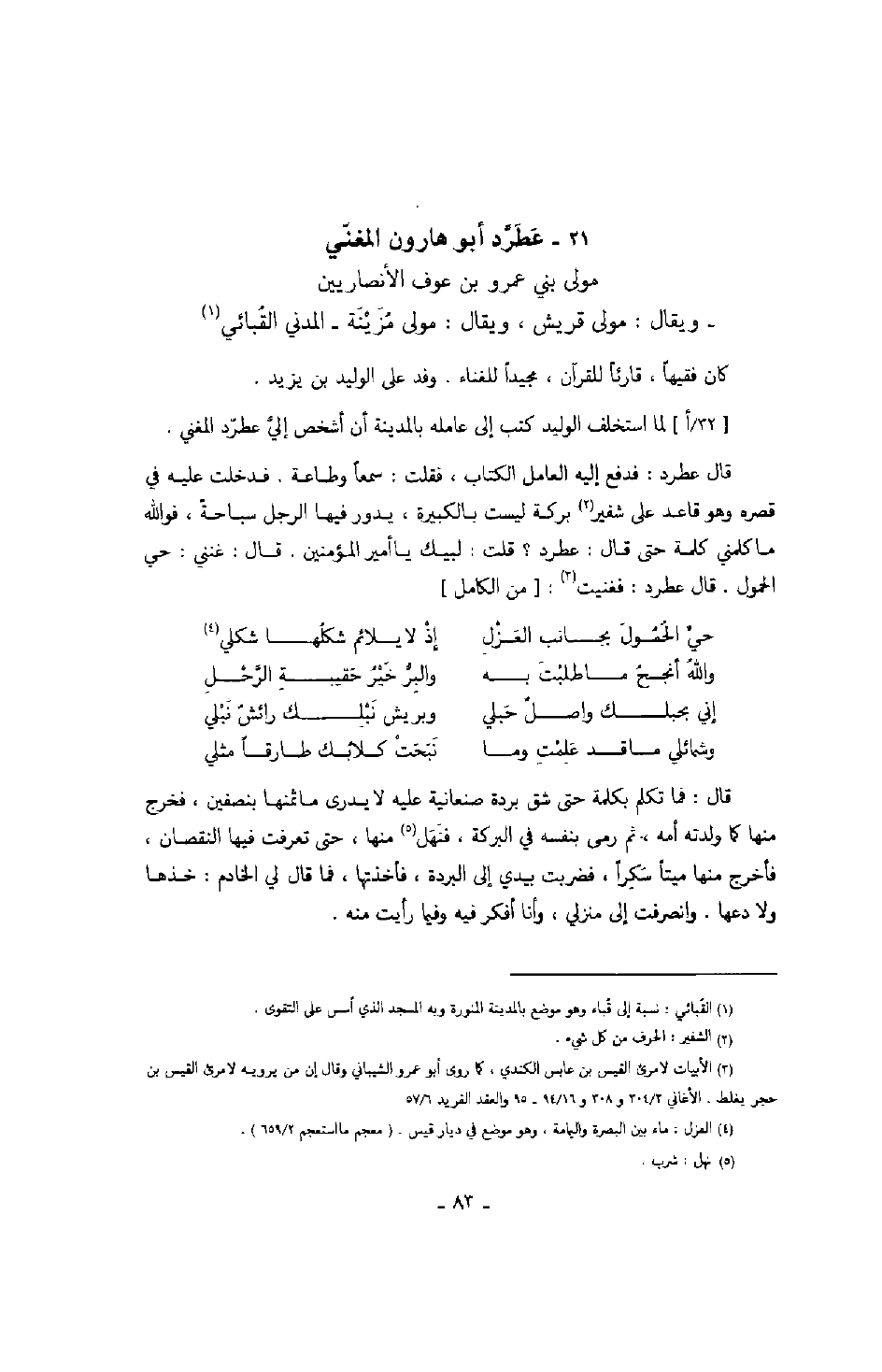 لما استخلف الوليد كتب إلى عامله بالمدينة أن أشخص إليّ عطرّد المغني.
