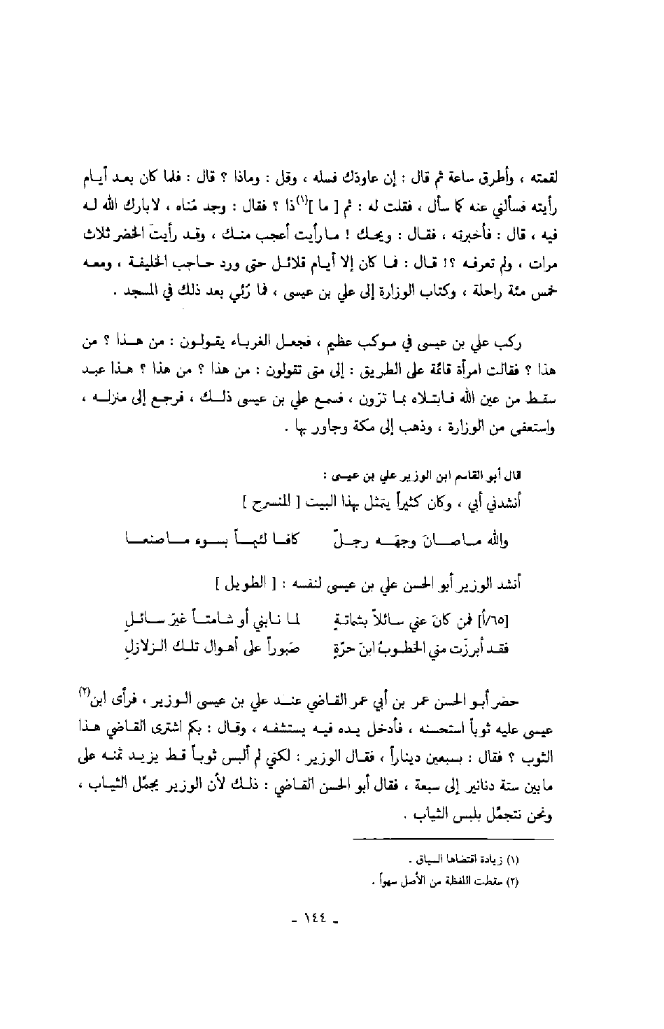 أنشد الوزير أبو الحسن علي بن عيسى لنفسه: الطويل