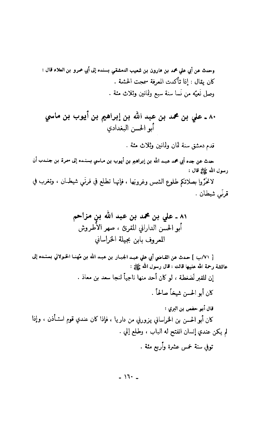 ابن إبراهيم بن أيوب بن ماسي أبو الحسن البغدادي قدم دمشق سنة ثمان وثمانين وثلاث مئة.
