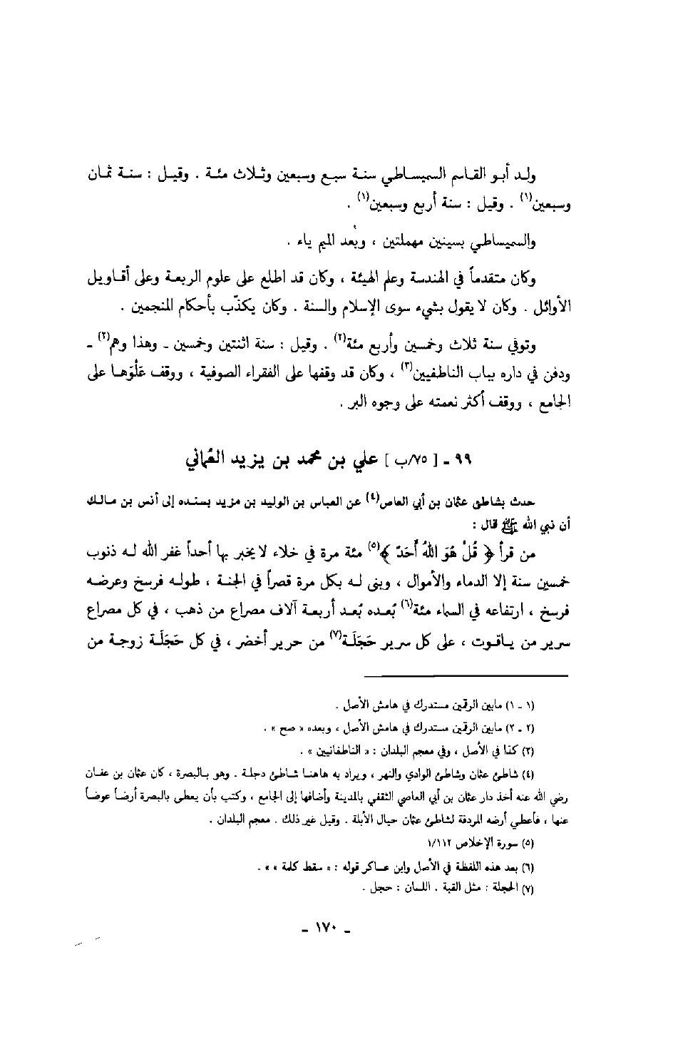 حدث بشاطئ عثمان بن أبي العاص عن العباس بن الوليد بن مزيد بسنده إلى أنس بن مالك أن نبي الله صلّى الله عليه وسلّم قال: