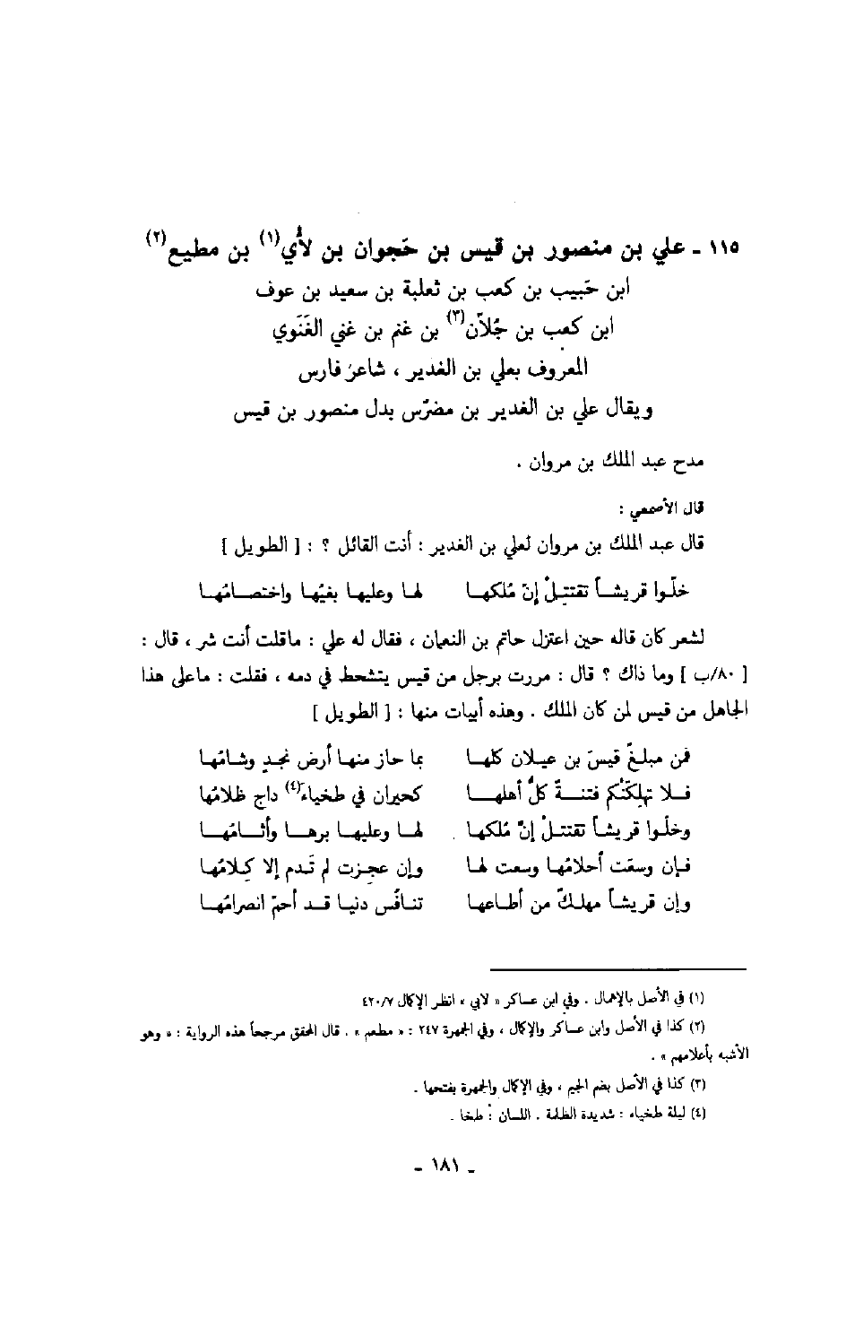 قال الأصمعي: قال عبد الملك بن مروان لعلي بن الغدير: أنت القائل؟: الطويل