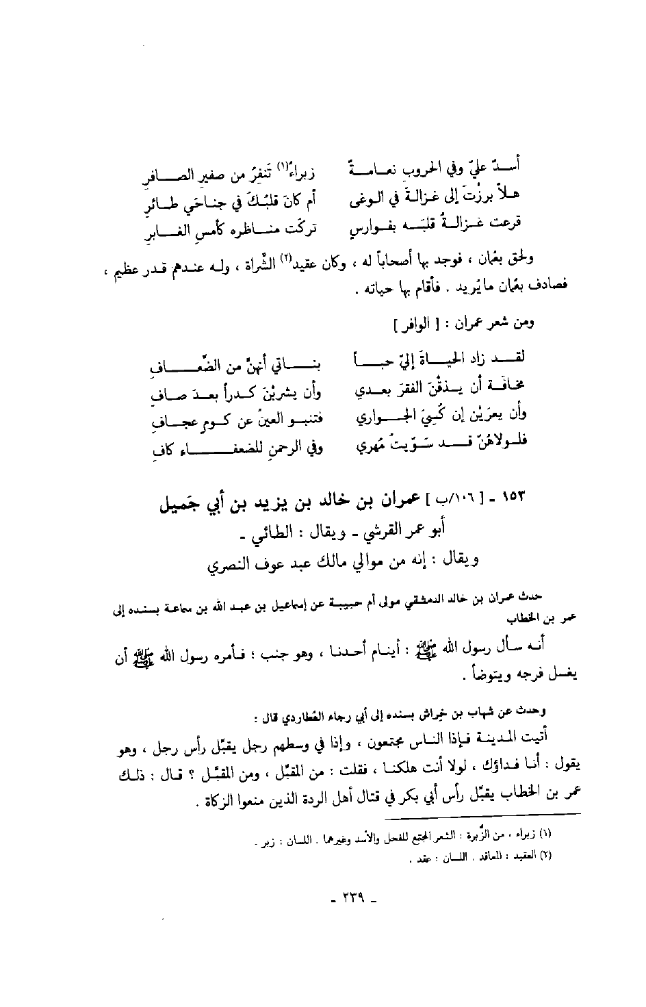 أبو عمر القرشي ويقال: الطائي ويقال: إنه من موالي مالك عبد عوف النصري حدث عمران بن خالد الدمشقي مولى أم حبيبة عن إسماعيل بن عبد الله بن سماعة بسنده إلى عمر بن الخطاب أنه سأل رسول الله صلّى الله عليه وسلّم: أينام أحدنا، وهو جنب؛ فأمره رسول الله صلّى الله عليه وسلّم أن يغسل فرجه ويتوضأ.