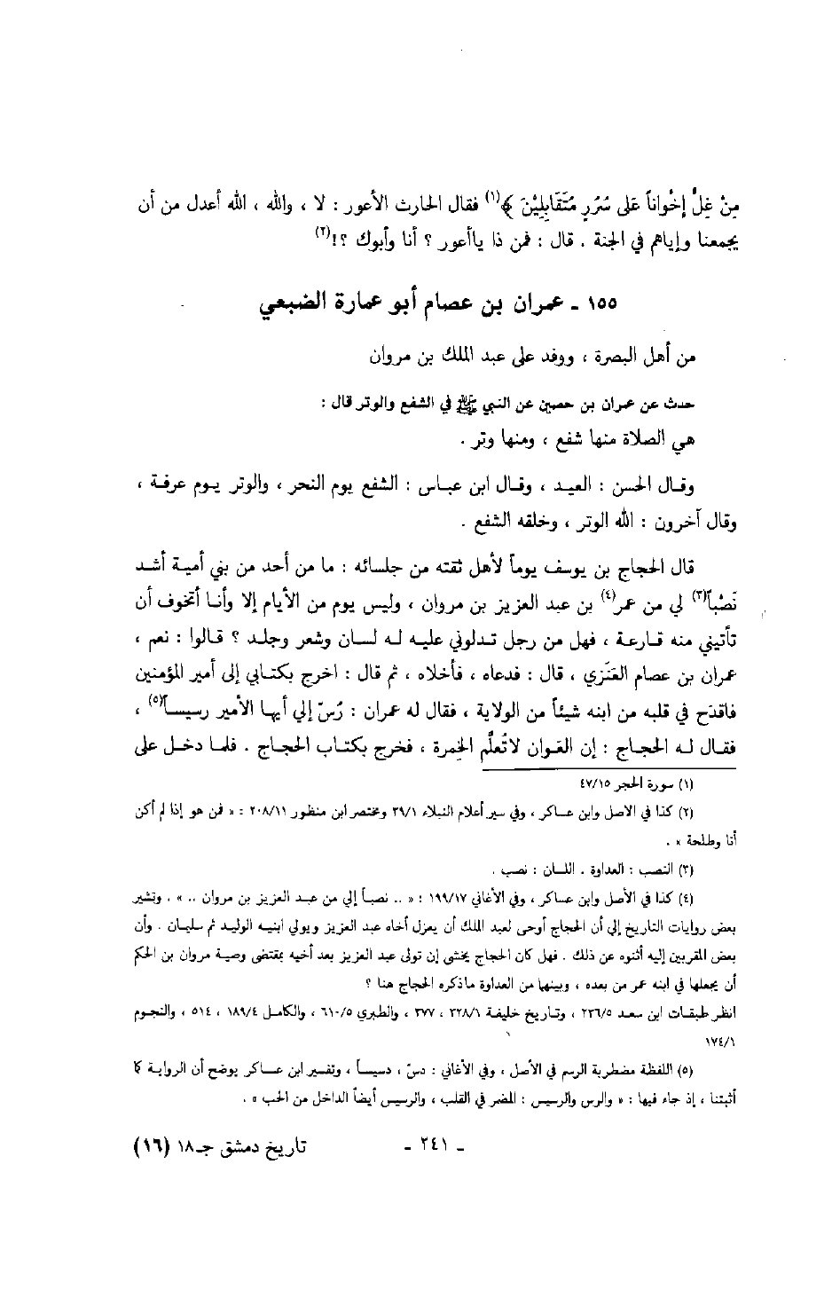 حدث عن عمران بن حصين عن النبي صلّى الله عليه وسلّم في الشفع والوتر قال: " هي الصلاة منها شفع، ومنها وتر ".