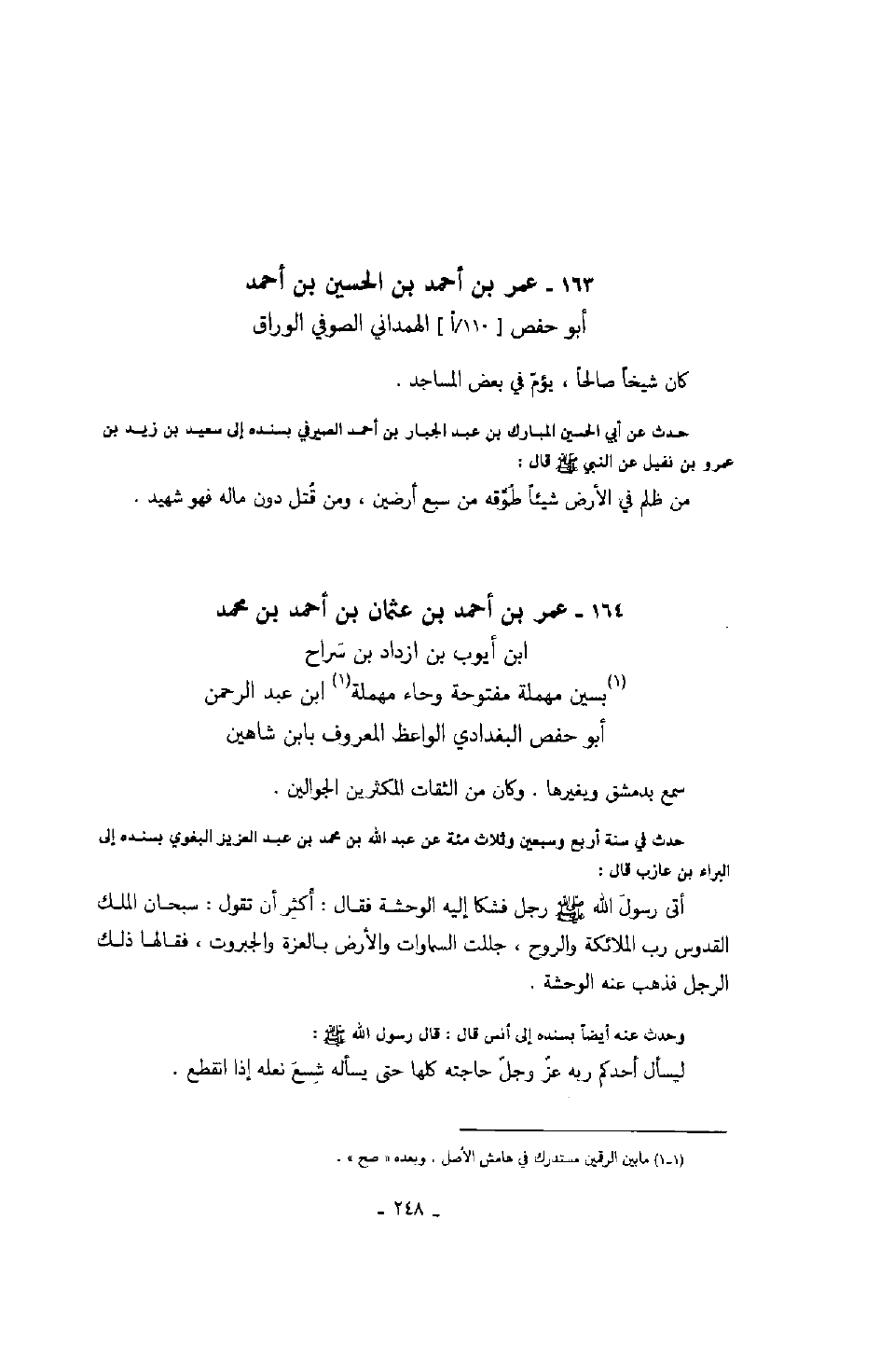 أبو حفص الهمداني الصوفي الوراق كان شيخاً صالحاً، يؤم في بعض المساجد.