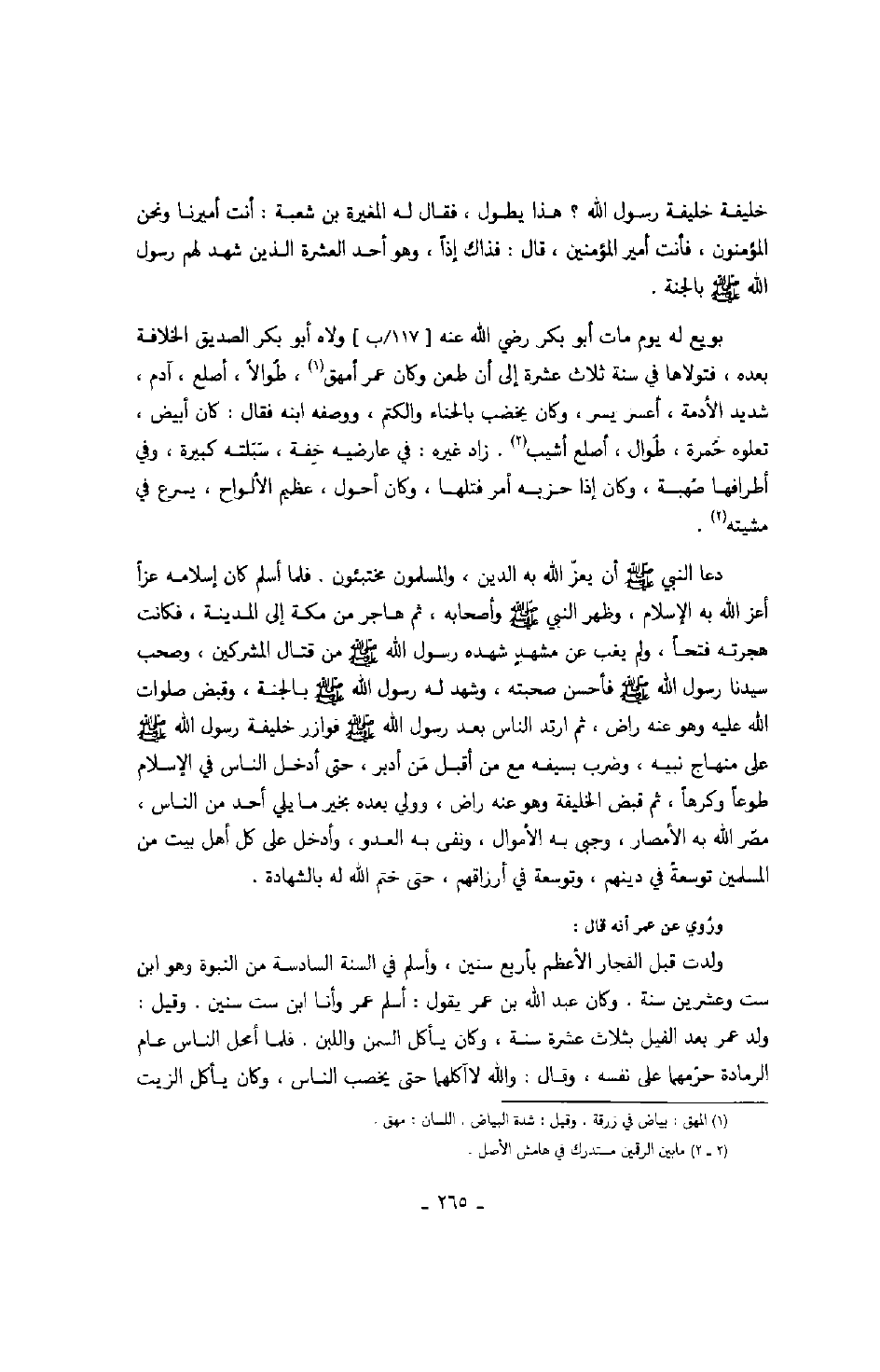 خليفة رسول الله؟ هذا يطول، فقال له المغيرة بن شعبة: أنت أميرنا ونحن المؤمنون، فأنت أمير المؤمنين، قال: فذاك إذاً، وهو أحد العشرة الذين شهد لهم رسول الله صلّى الله عليه وسلّم بالجنة.