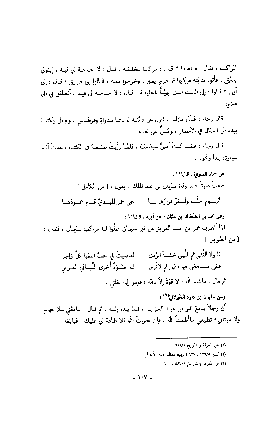 عن حماد العدويّ، قال: سمعت صوتاً عند وفاة سليمان بن عبد الملك، يقول: من الكامل