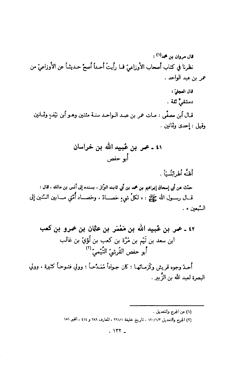 قال مروان بن محمد: نظرنا في كتاب أصحاب الأوزاعيّ فما رأيت أحداً أصحّ حديثاً عن الأوزاعيّ من عمر بن عبد الواحد.