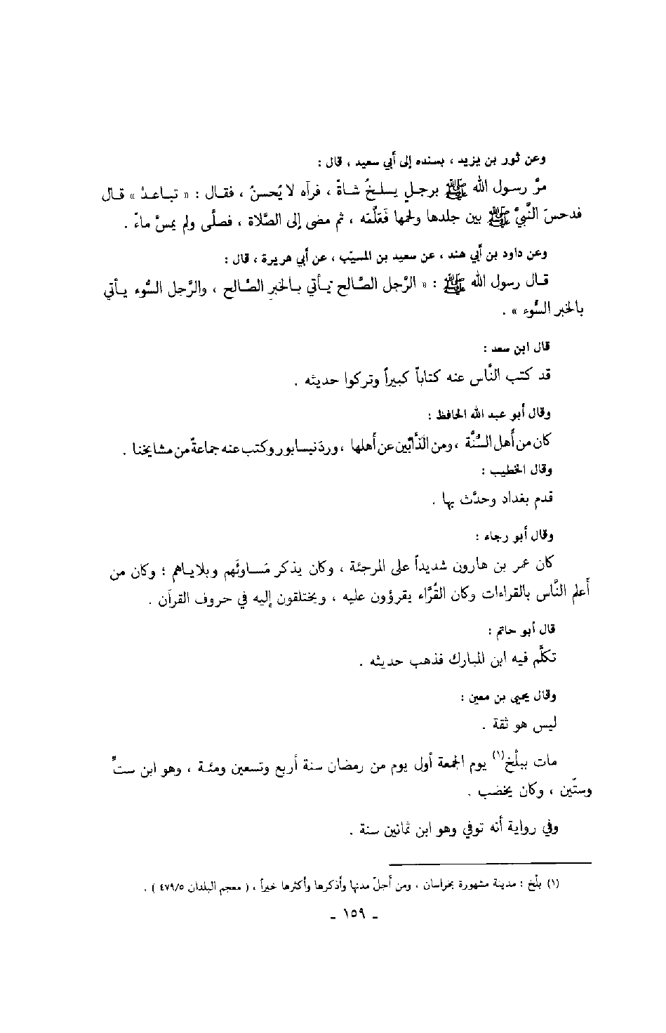 وقال يحيى بن معين: ليس هو ثقة. مات ببلخ يوم الجمعة أول من رمضان سنة أربع وتسعين ومئة، وهو ابن ستّ وستين، وكان يخضب. وفي رواية أنه توفي وهو ابن ثمانين سنة.