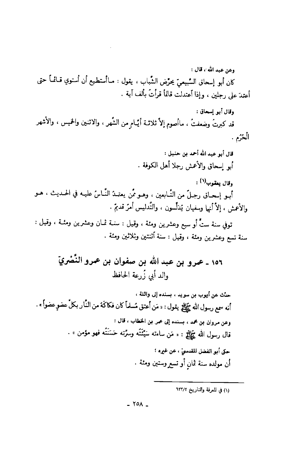 قال أبو عبد الله بن حنبل: أبو إسحاق والأعمش رجلا أهل الكوفة.