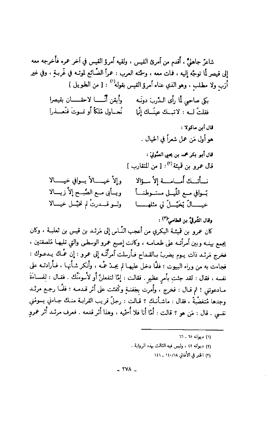 قال أبو بكر محمد بن يحيى الصّولي: قال عمرو بن قميئة: من المتقارب