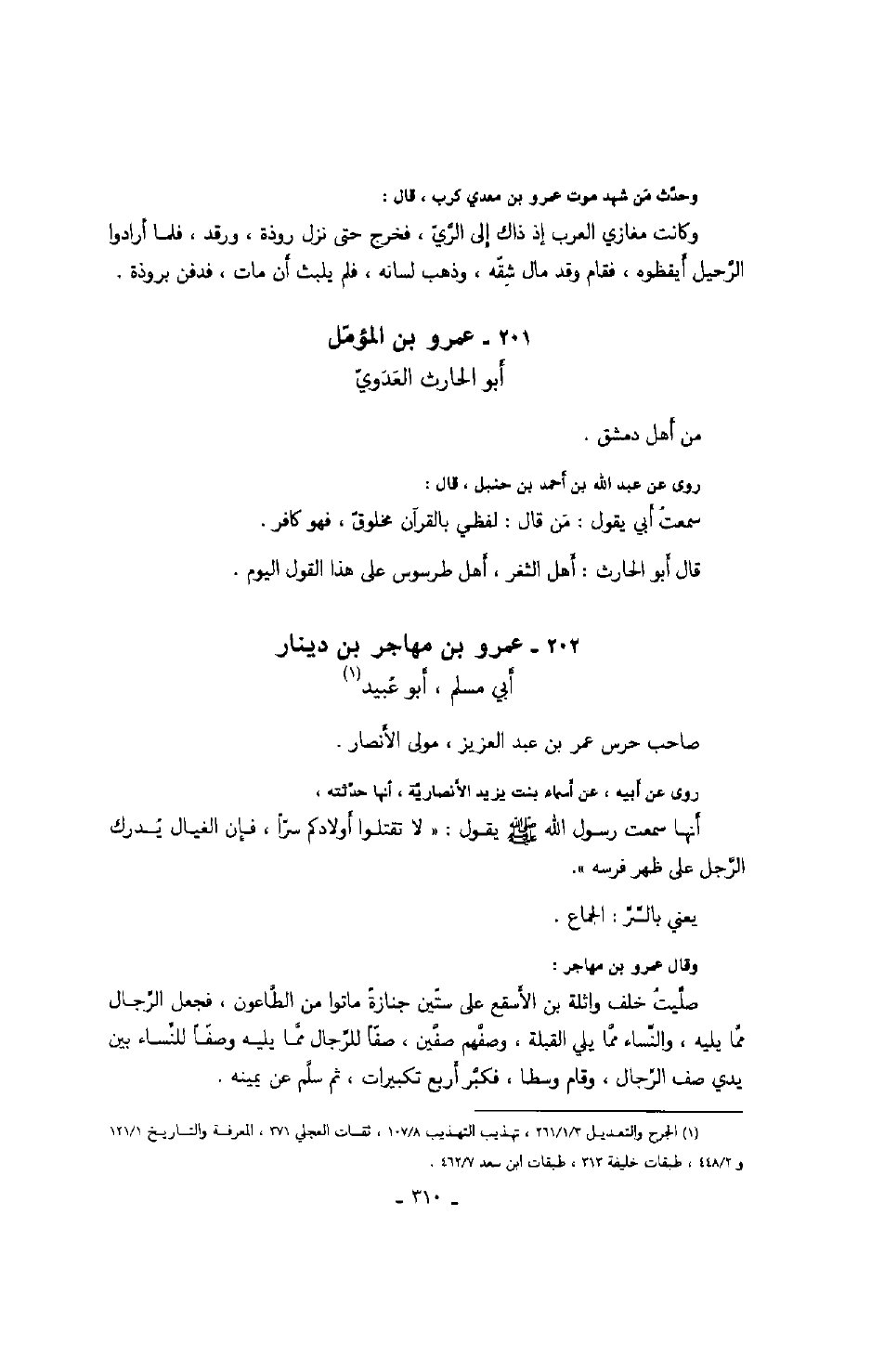 وقال عمرو بن مهاجر: صلّيت خلف واثلة بن الأسقع على ستّين جنازة ماتوا من الطّاعون، فجعل الرّجال مّما يليه، والنّساء مّما يلي القبلة، وصفّهم صفّين، صفّاً للرّجال مّما يليه للنّساء بين يدي صف الرّجال، وقام وسطا، فكبّر أربع تكبيرات، ثم سلّم عن يمينه.