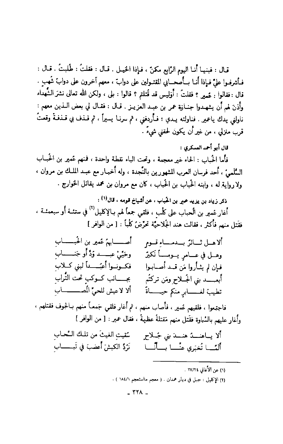 ألاهل ثائر بدماء قوم ... أصابهم عمير بن الحباب