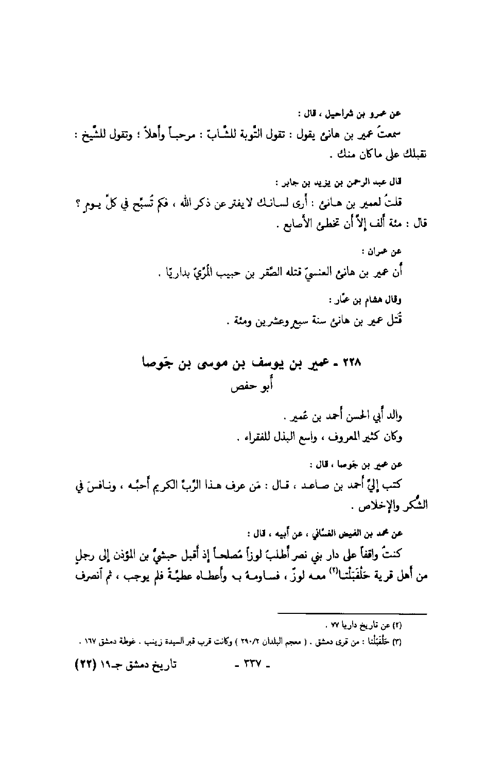 عن عمران: أن عمير بن هانئ العنسيّ قتله الصّقر بن حبيب المرّيّ بداريّا.