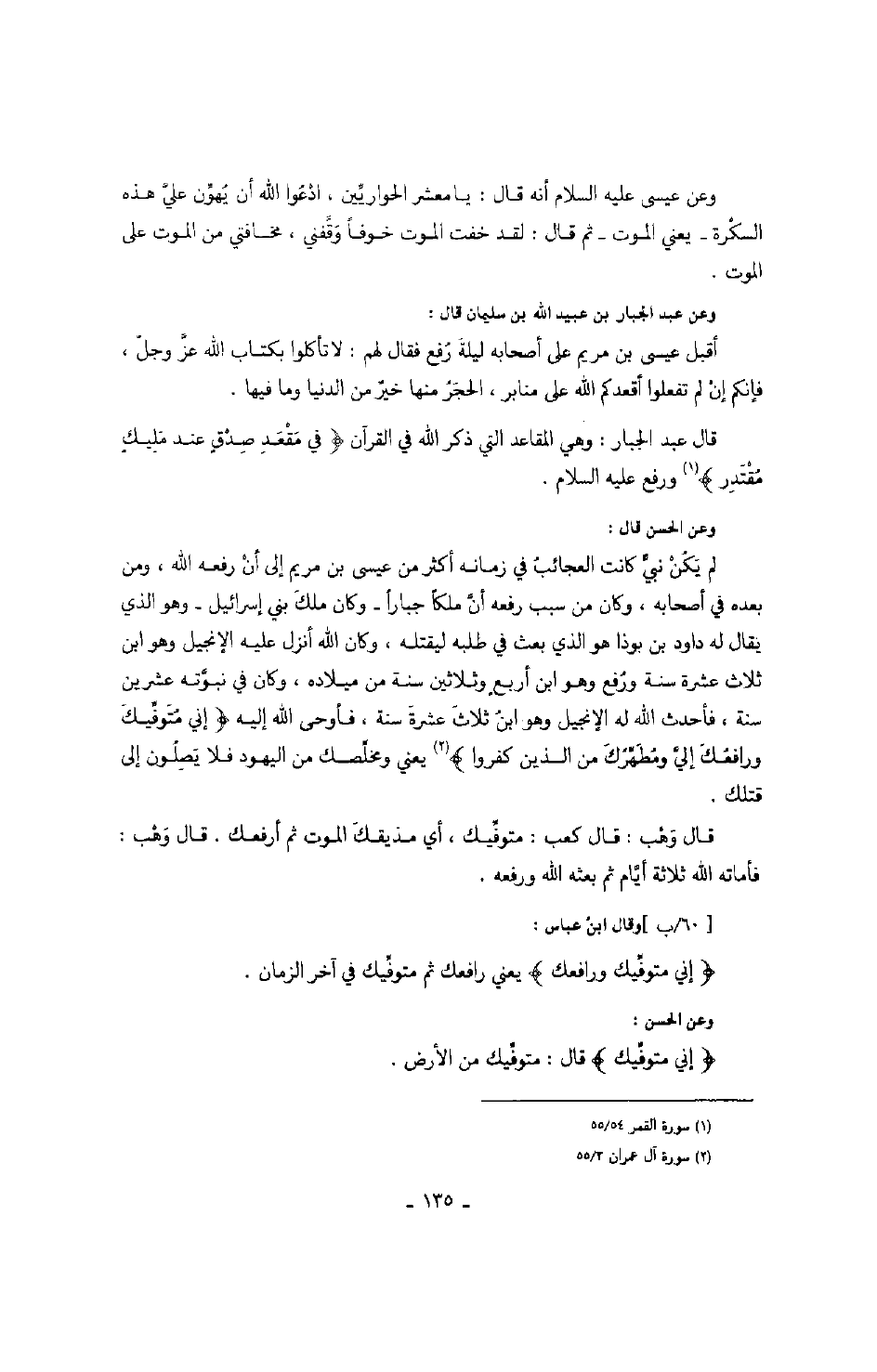 وقال ابن عباس: " إني متوفيك ورافعك " يعني رافعك ثم متوفيك في آخر الزمان.