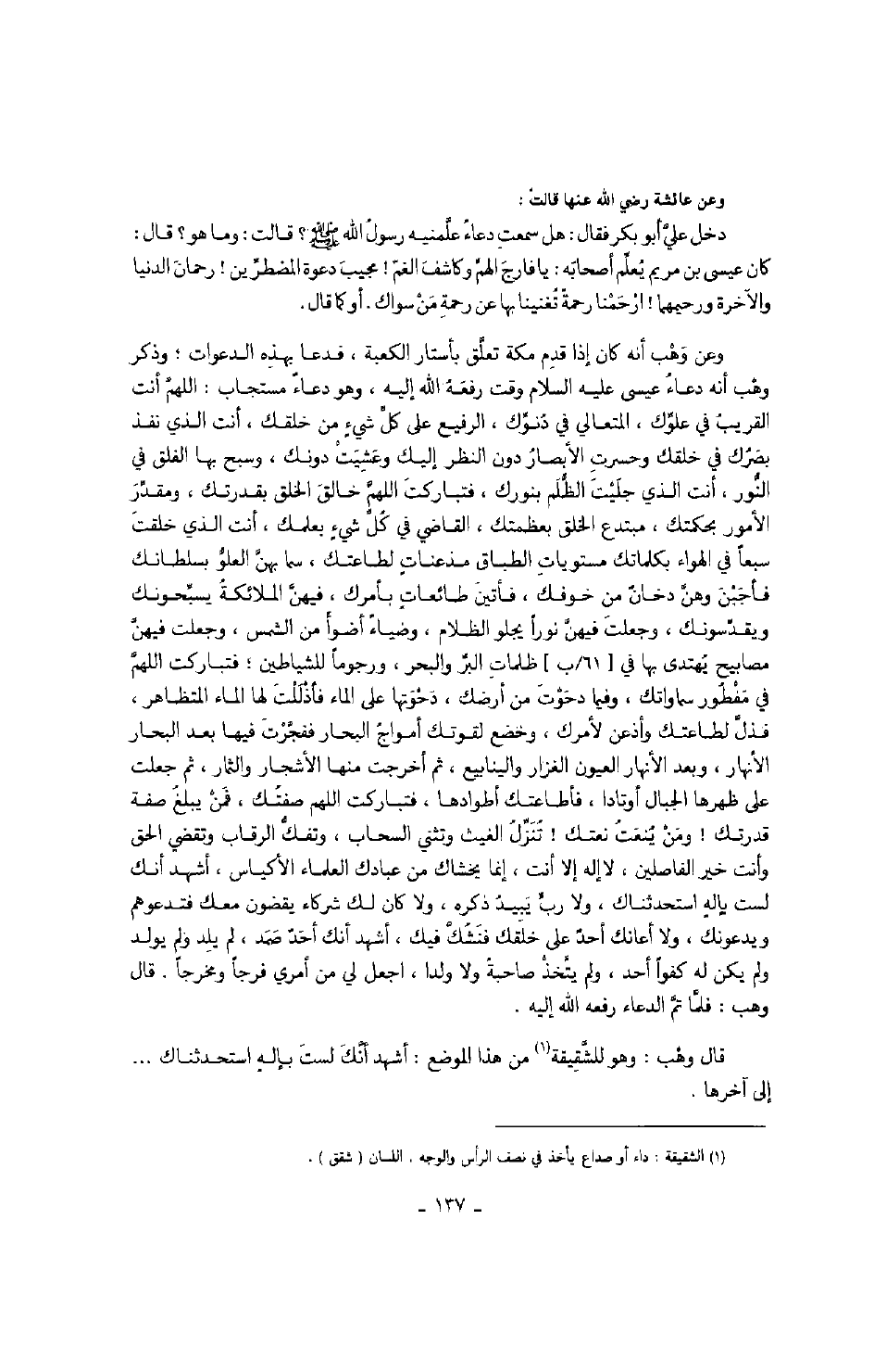 قال وهب: وهو للشقيقة من هذا الموضع: أشهد أنك لست بإلهٍ استحدثناك ... إلى آخرها.