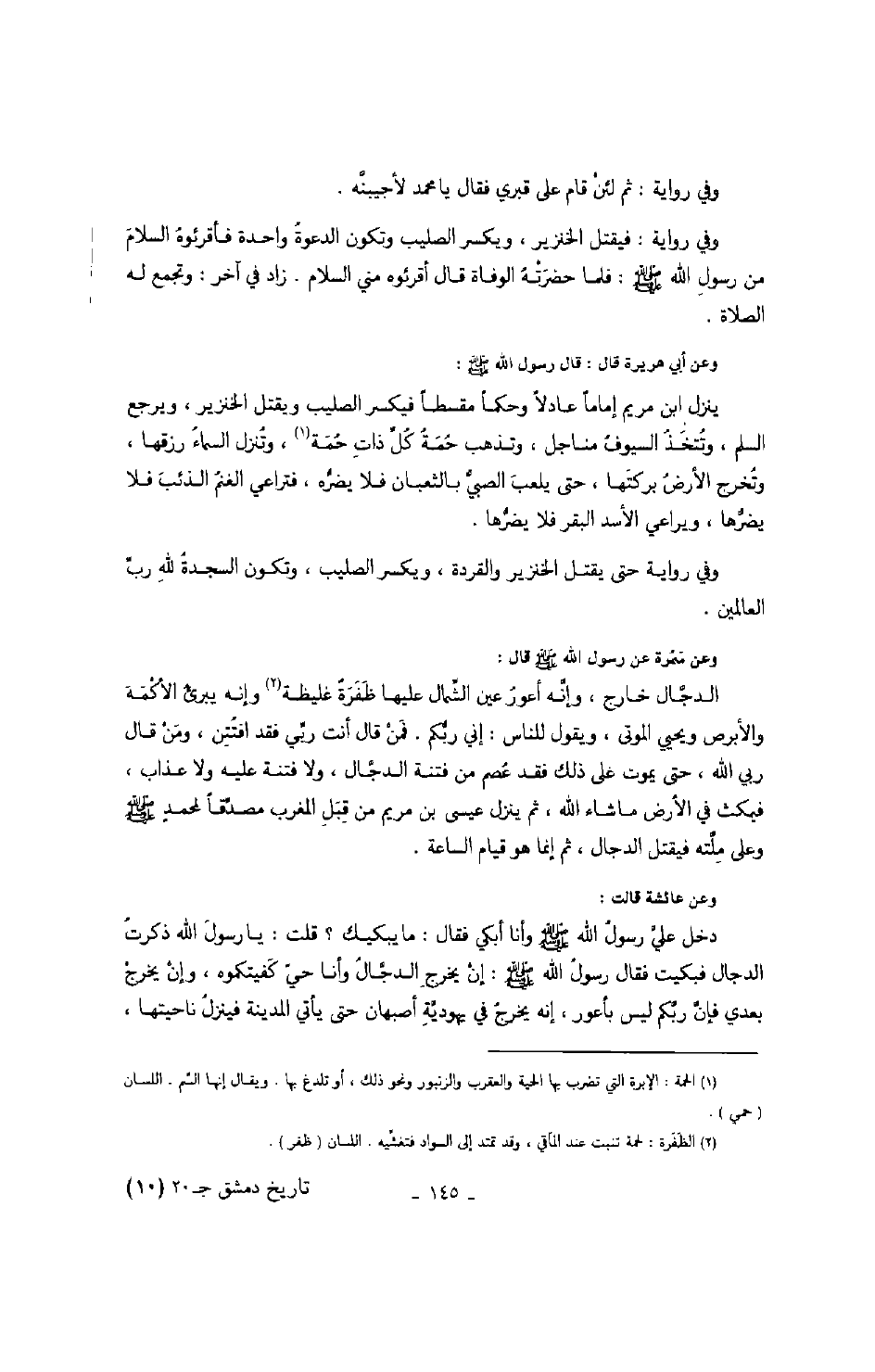 وفي رواية حتى يقتل الخنزير والقردة، ويكسر الصليب، وتكون السجدة لله رب العالمين.