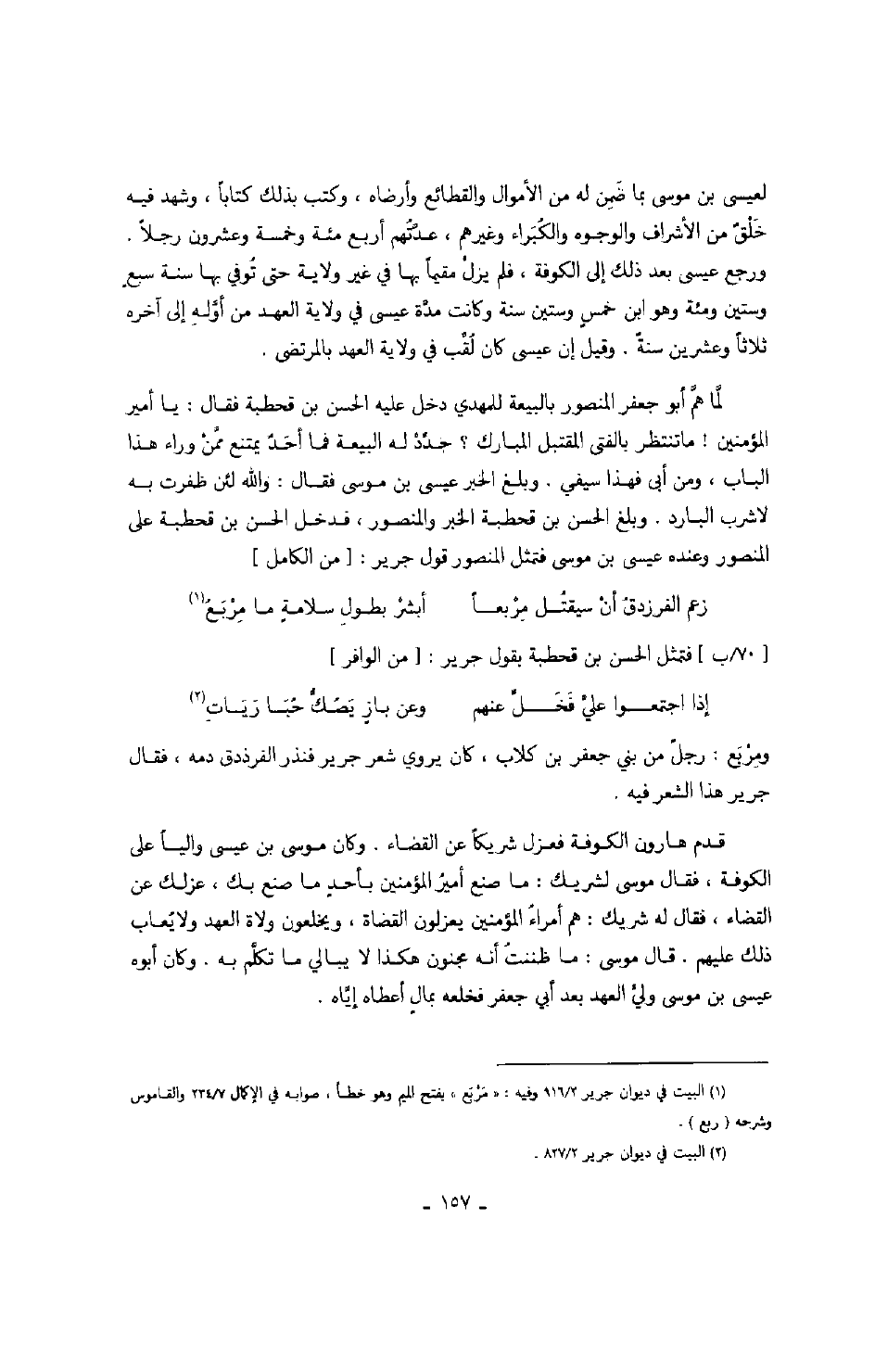 فتمثل الحسن بن قحطبة بقول جرير: من الوافر