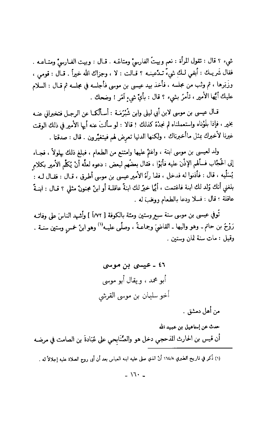 عيسى بن موسى فأجلسه في مجلسه ثم قال: السلام عليك أيها الأمير، تأمر بشيء؟ قال: بأي شيء آمر! وضحك.