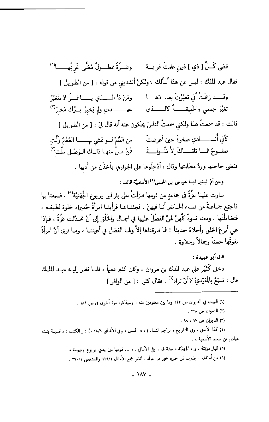 فقال عبد الملك: ليس عن هذا أسألك، ولكن أنشديني من قوله: من الطويل
