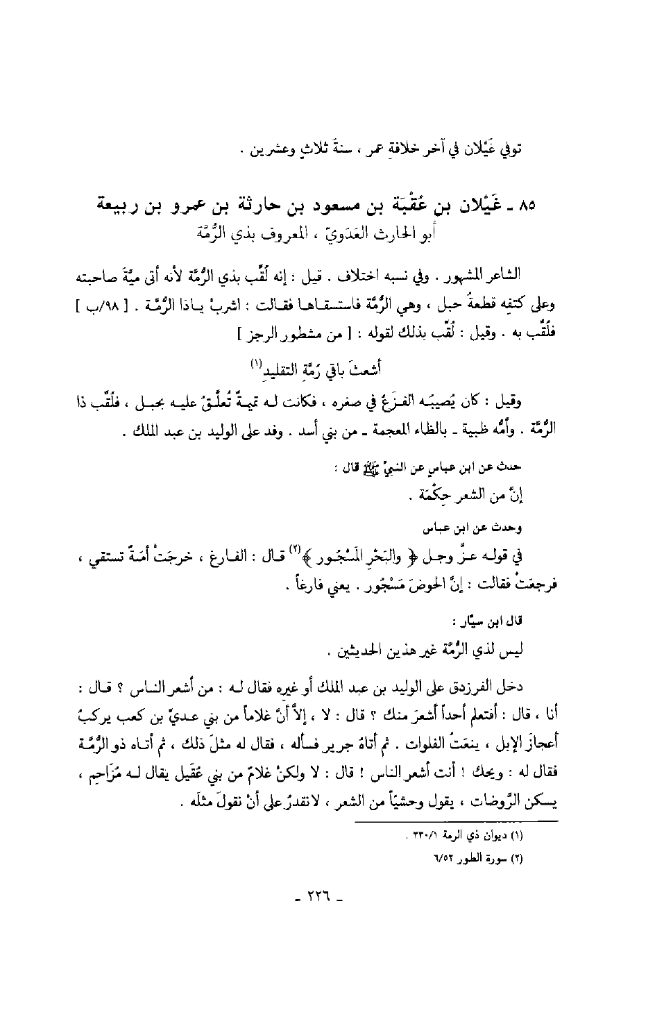 وقيل: كان يصيبه الفزع في صغره، فكانت له تميمةٌ تعلق عليه بحبل، فلقب ذا الرمة. وأمه ظبية - بالظاء المعجمة - من بني أسد. وفد على الويد بن عبد الملك.