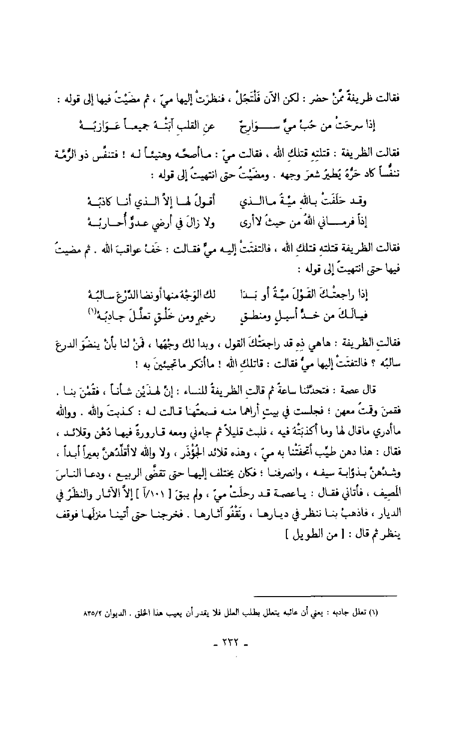 فقالت الظريفة قتلته قتلك الله، فالتفتت إليه مي فقالت: خف عواقب الله. ثم مضت فيها حتى انتهت إلى قوله: