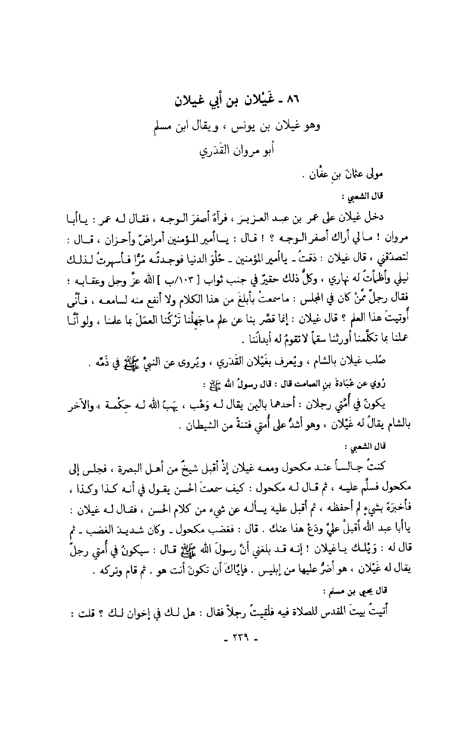 صلب غيلان بالشام، ويعرف بغيلان القدري، ويروى عن النبي صَلَّى اللهُ عَلَيْهِ وَسَلَّمَ في ذمة.