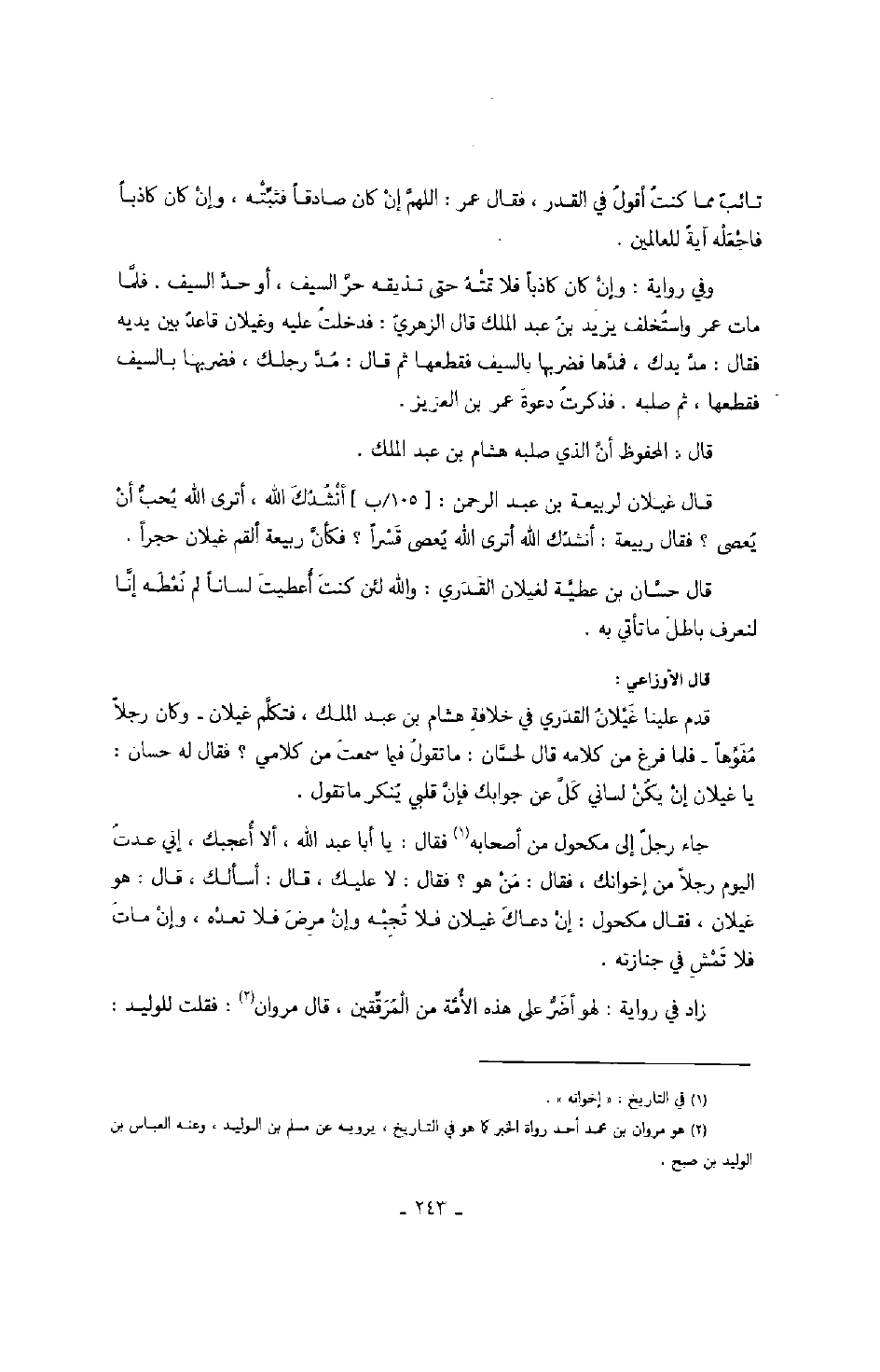 تائب مما كنت أقول في القدر، فقال عمر: اللهم إن كان صادقاً فثبته، وإن كان كاذباً فاجعله آية للعالمين.
