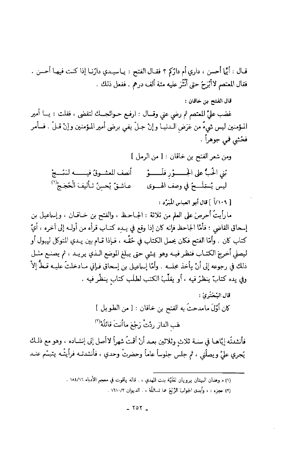 قال البحتري: كان أول ما مدحت به الفتح بن خاقان: من الطويل
