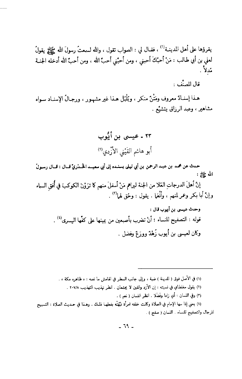 وحدث عيسى بن أيوب قال: قول: التصفيح للنساء؛ أن تضرب بأصبعين من يمينها على كفها اليسرى.