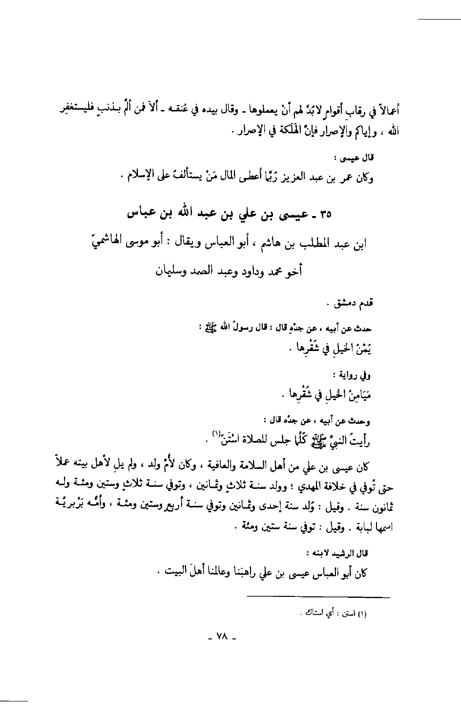 قال الرشيد لابنه: كان أبو العباس عيسى بن علي راهبنا وعالمنا أهل البيت.