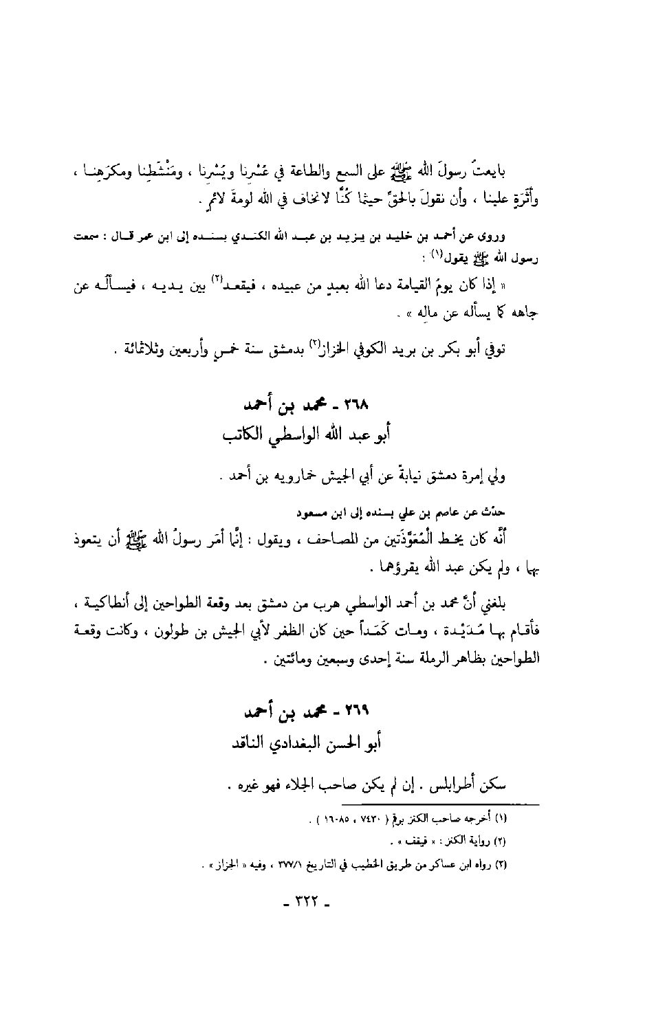 بلغني أن محمد بن أحمد الواسطي هرب من دمشق بعد وقعة الطواحين إلى أنطاكية، فأقام بها مديدة، ومات كمداً حين كان الظفر لأبي الجيش بن طولون، وكانت وقعة الطواحين بظاهر الرملة سنة إحدى وسبعين ومائتين.