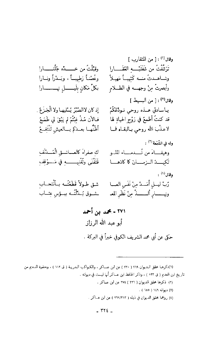 الرزاز حكى عن أبي محمد الشريف الكوفي خبراً في البركة.