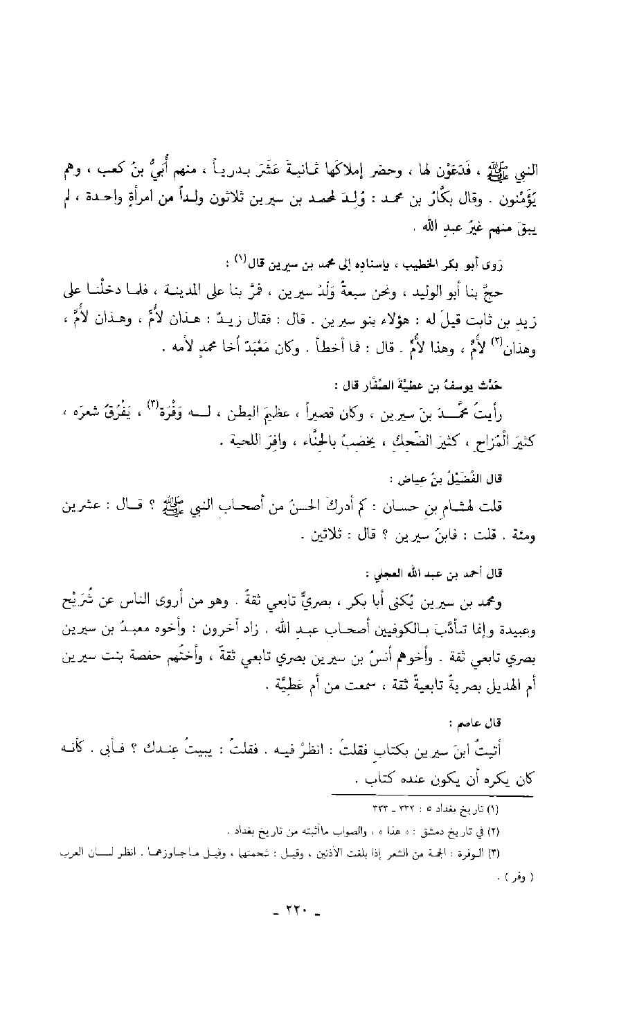 قال الفضيل بن عياض: قلت لهشام بن حسان: كم أدرك الحسن من أصحاب النبي صَلَّى اللهُ عَلَيْهِ وَسَلَّمَ؟ قال: عشرين ومئة. قلت: فابن سيرين؟ قال: ثلاثين.