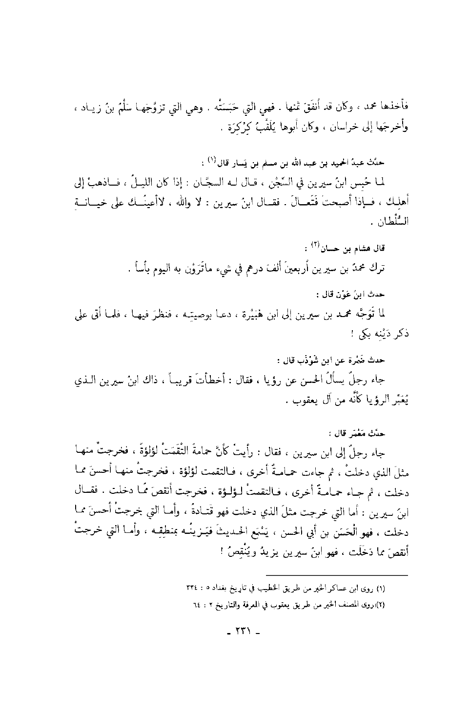 قال هشام بن حسان: ترك محمد بن سيرين أربعين ألف درهم في شيء ما ترون به اليوم بأساً.