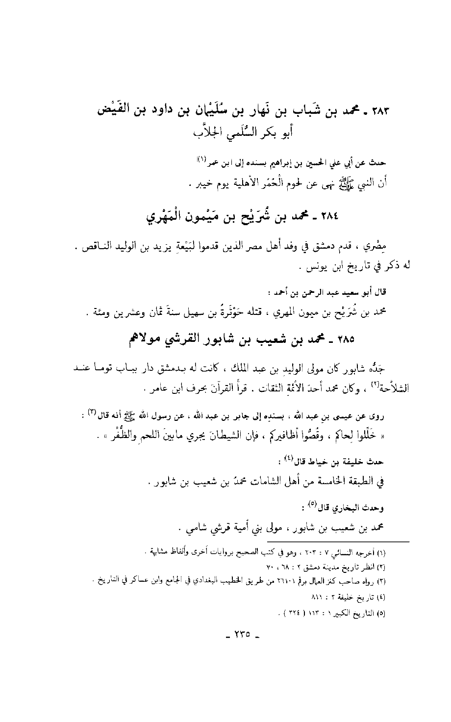 حدث خليفة بن خياط قال: في الطبقة الخامسة من أهل الشامات محمد بن شعيب بن شابور.