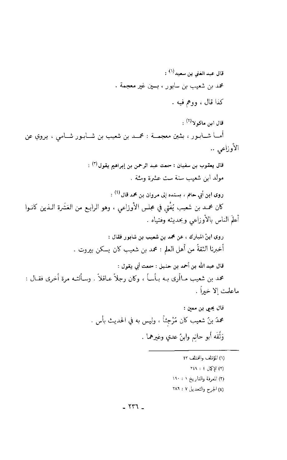 قال ابن ماكولا: أما شابور، بشين معجمة: محمد بن شعيب بن شابور بن شامي، يروي عن الأوزاعي..