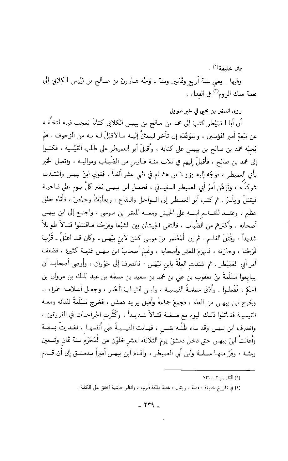 قال خليفة: وفيها - يعني سنة أربع وثمانين ومئة - وجه هارون بن صالح بن بيهس الكلابي إلى غصة ملك الروم في الفداء.