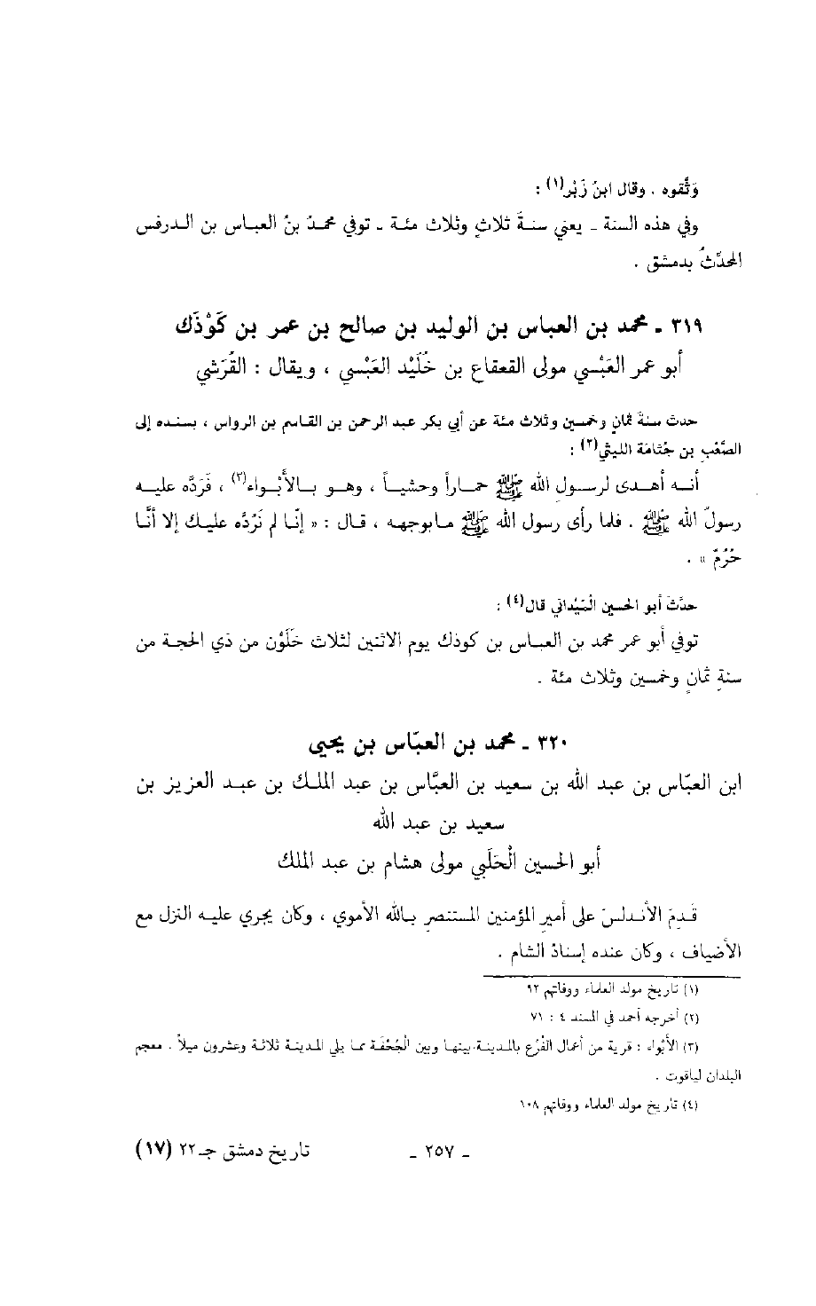 وثقوه. وقال ابن زبر: وفي هذه السنة - يعني سنة ثلاث وثلاث مئة - توفي محمد بن العباس بن الدرفس المحدث بدمشق.