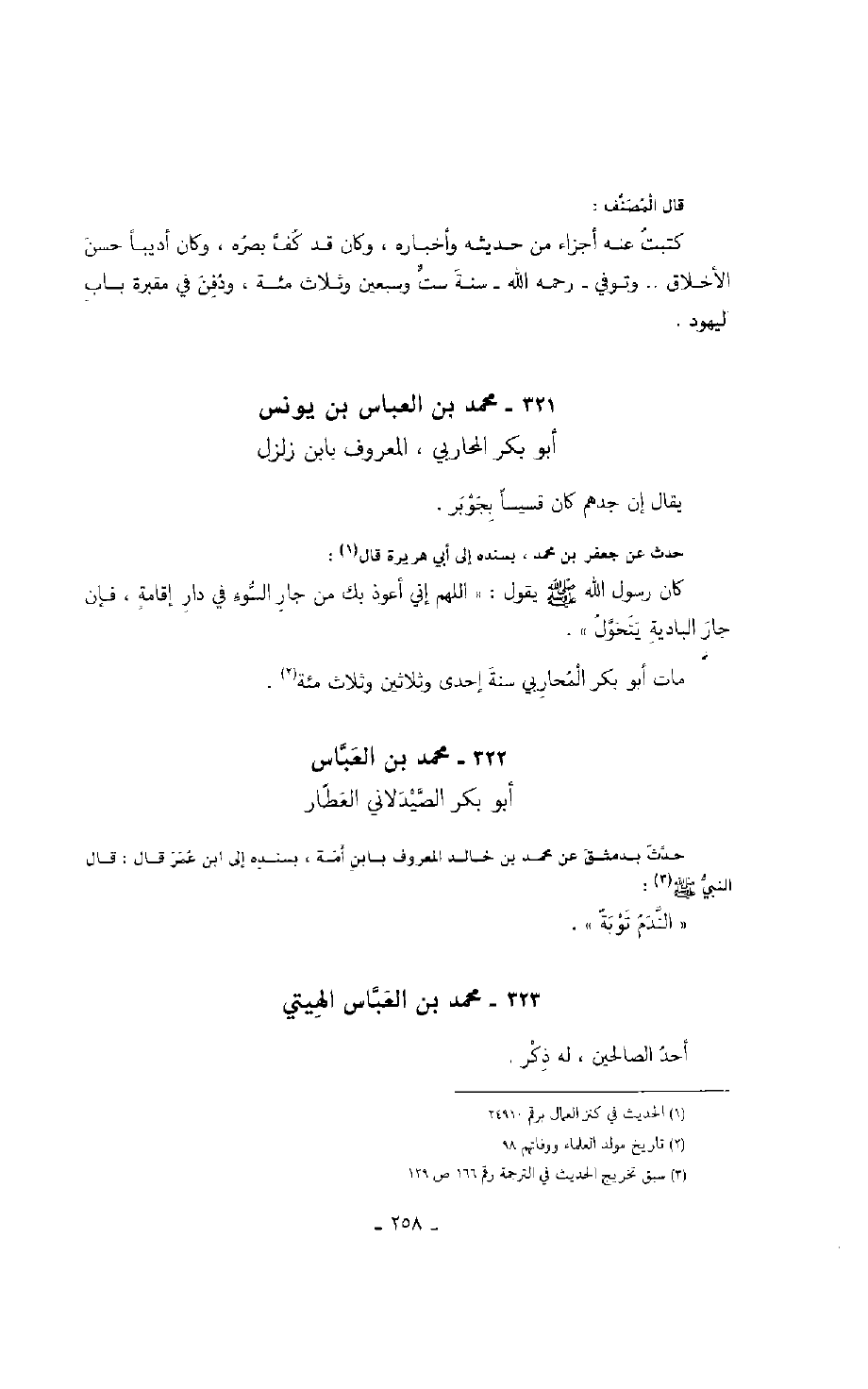 قال المصنف: كتبت عنه أجزاء من حديثه وأخباره، وكان قد كف بصره، وكان أديباً حسن الأخلاق.. وتوفي - رحمه الله - سنة ست وسبعين وثلاث مئة، ودفن في مقبرة باب ليهود.