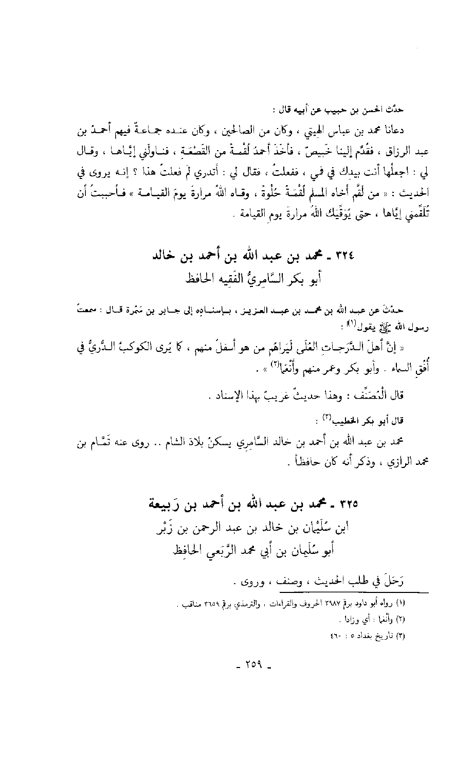 قال أبو بكر الخطيب: محمد بن عبد الله بن أحمد بن خالد السامري يسكن بلاد الشام.. روى عنه تمام بن محمد الرازي، وذكر أنه كان حافظاً.