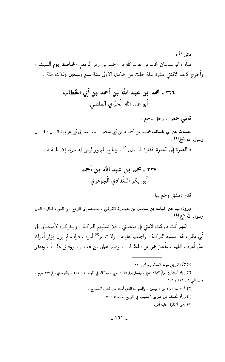 حدث عن أبي طالب محمد بن أحمد بن أبي معشر، بسنده إلى أبي هريرة قال: قال رسول الله صَلَّى اللهُ عَلَيْهِ وَسَلَّمَ: " العمرة إلى العمرة كفارة لما بينهما. والحج المبرور ليس له جزاء إلا الجنة ".