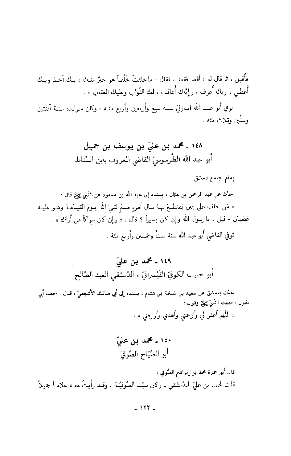 قال أبو حمزة محمد بن إبراهيم الصوفي: قلت لمحمد بن علي الدمشقي وكان سيد الصوفية، وقد رأيت معه غلاماً جميلاً