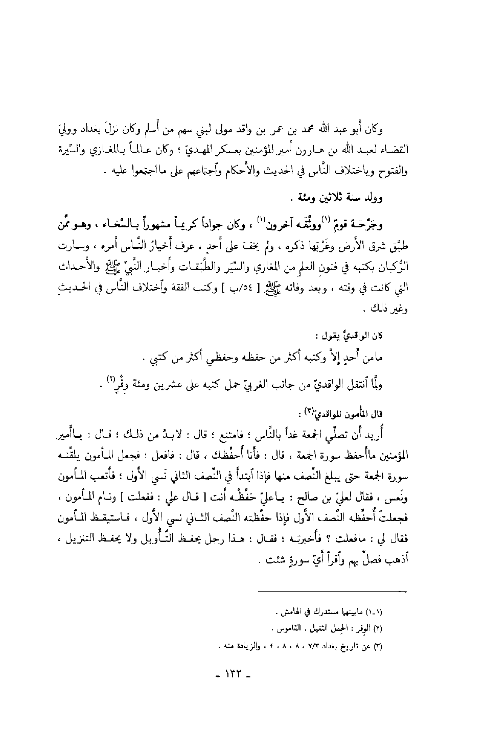 كان الواقدي يقول: ما من أحدٍ إلا وكتبه أكثر من حفظه وحفظي أكثر من كتبي.
