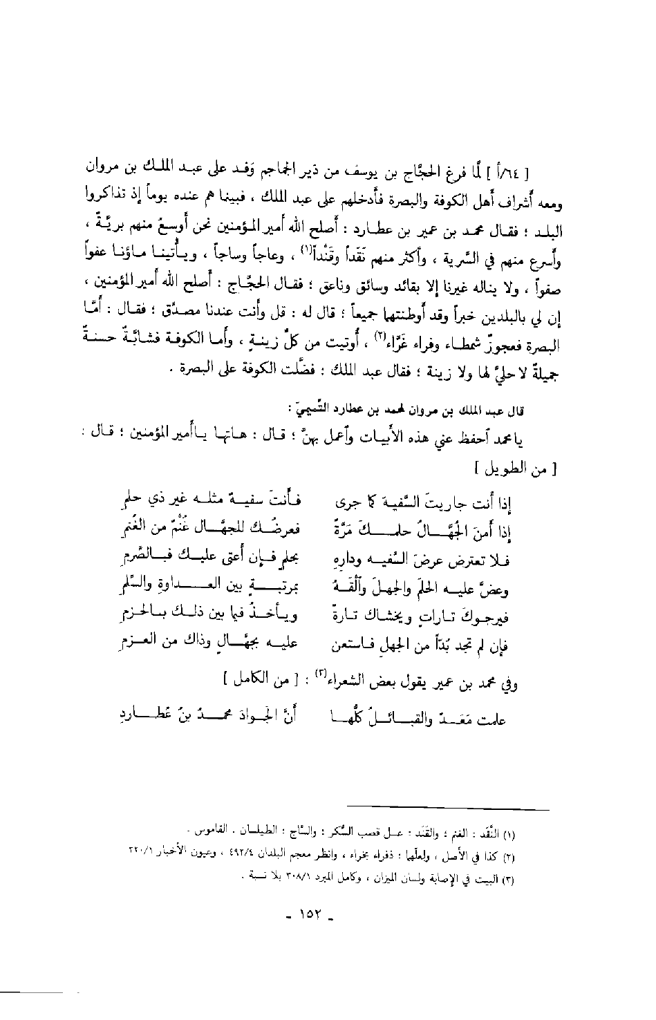 قال عبد الملك بن مروان لمحمد بن عطارد التميمي: يا محمد احفظ عني هذه الأبيات واعمل بهن؛ قال: هاتها يا أمير المؤمنين؛ قال: من الطويل