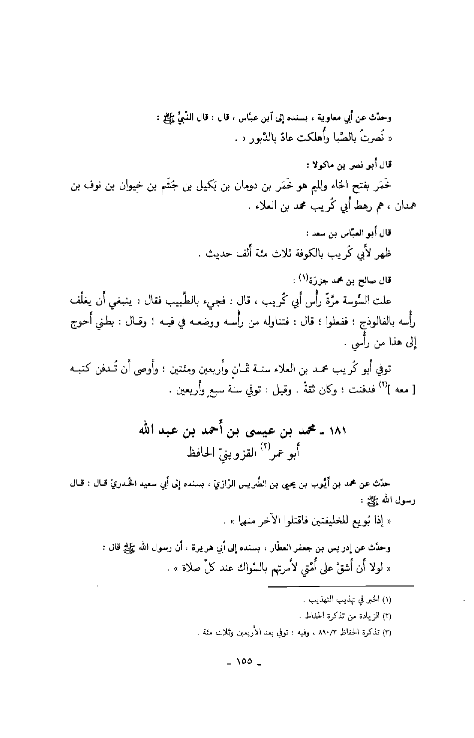 ابن عبد الله أبو عمر القزويني الحافظ حدث عن محمد بن أيوب بن يحيى بن الضريس الرازي، بسنده إلى أبي سعيد الخدري قال: قال رسول الله صَلَّى اللهُ عَلَيْهِ وَسَلَّمَ: " إذا بويع للخليفتين فاقتلوا الآخر منهما ".