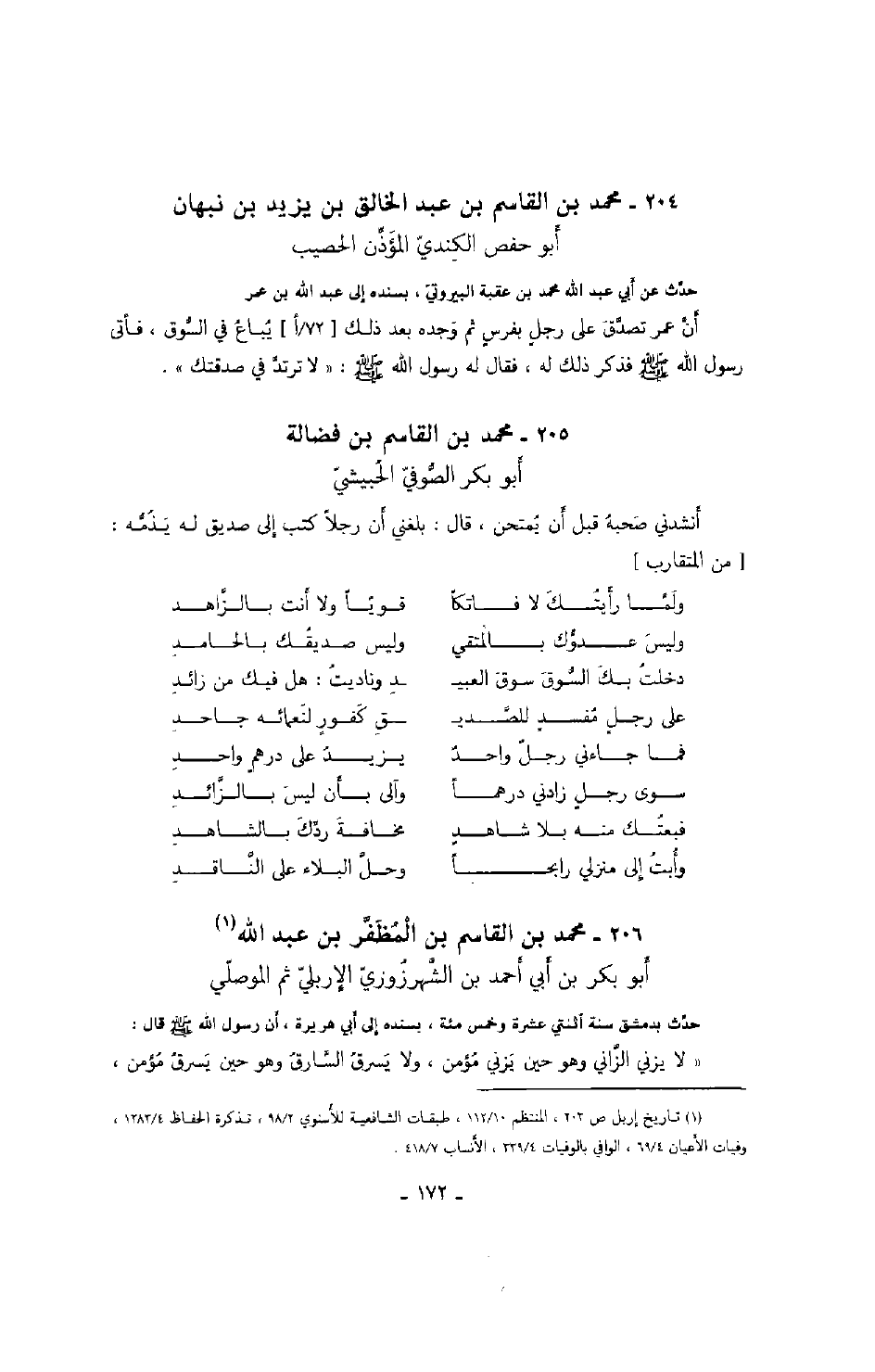 ابن يزيد بن نبهان أبو حفص الكندي المؤذن الحصيب حدث عن أبي عبد الله محمد بن عقبة البيروتي، بسنده إلى عبد الله بن عمر أن عمر تصدق على رجلٍ بفرسٍ ثم وجده بعد ذلك يباع في السوق، فأتى رسول الله صَلَّى اللهُ عَلَيْهِ وَسَلَّمَ فذكر ذلك له، فقال له رسول الله صَلَّى اللهُ عَلَيْهِ وَسَلَّمَ: " لا ترتد في صدقتك ".