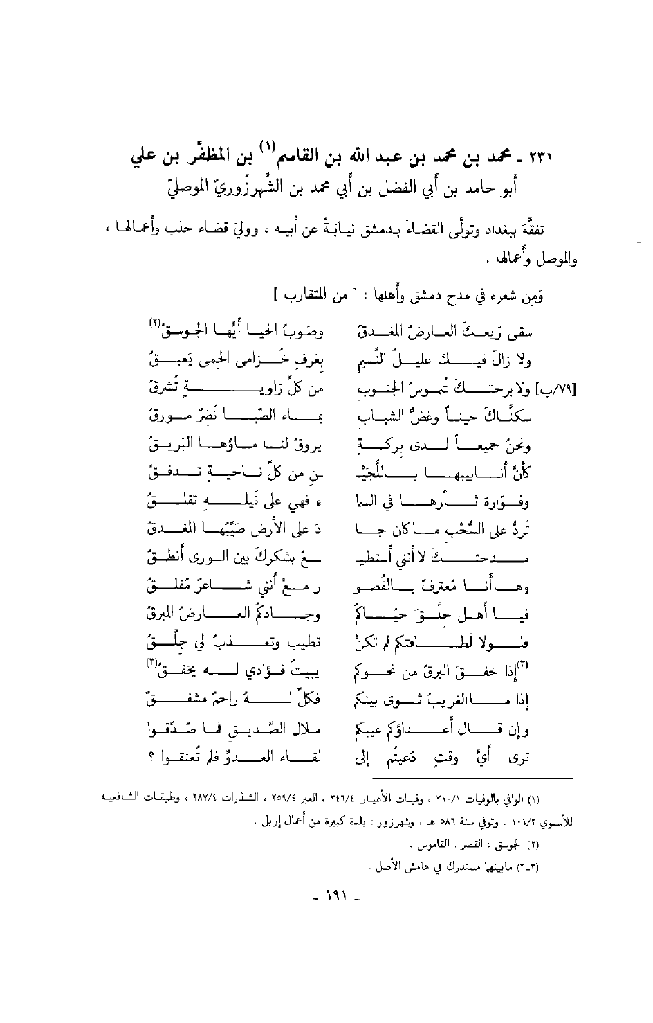 ومن شعره في مدح دمشق وأهلها: من المتقارب