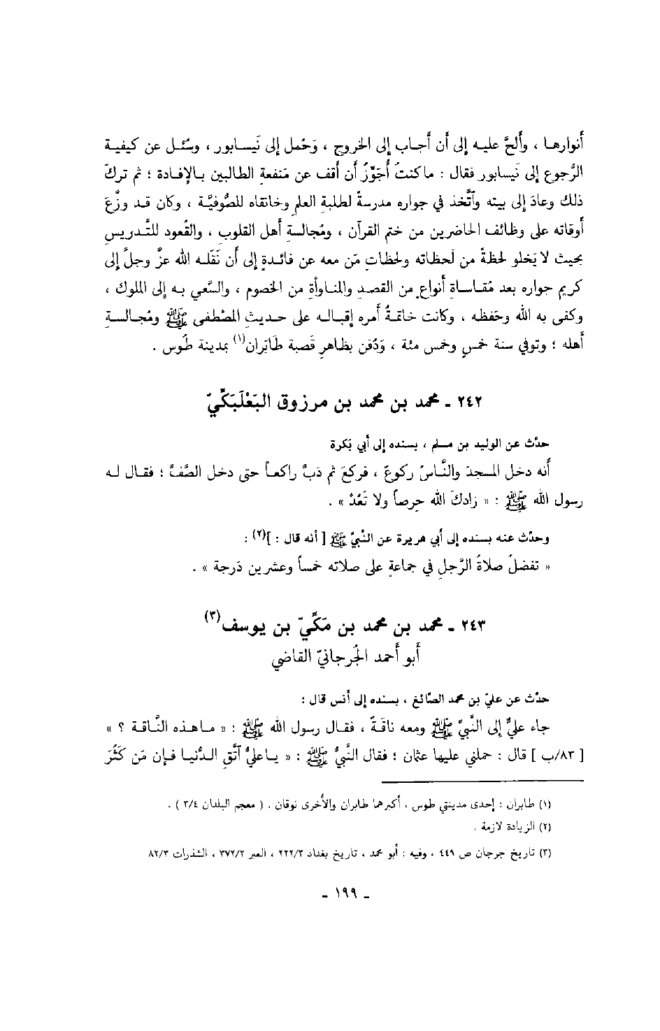 وحدث عنه بسنده إلى أبي هريرة عن النبي صَلَّى اللهُ عَلَيْهِ وَسَلَّمَ أنه قال: " تفضل صلاة الرجل في جماعةٍ على صلاته خمساً وعشرين درجة ".