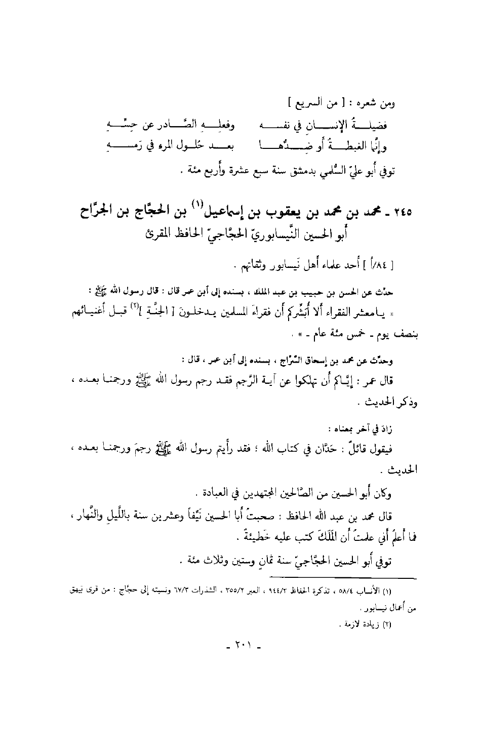 ابن الحجاج بن الجراح أبو الحسين النيسابوري الحجاجي الحافظ المقرئ أحد علماء أهل نيسابور وثقاتهم.