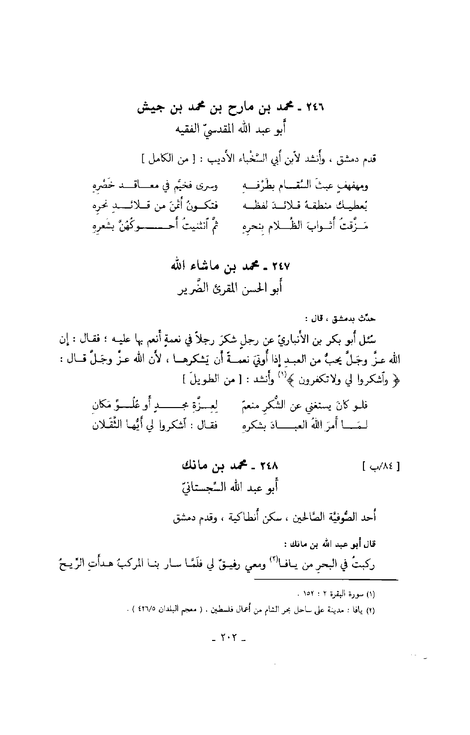 أحد الصوفية الصالحين، سكن أنطاكية، وقدم دمشق قال أبو عبد الله بن مانك: